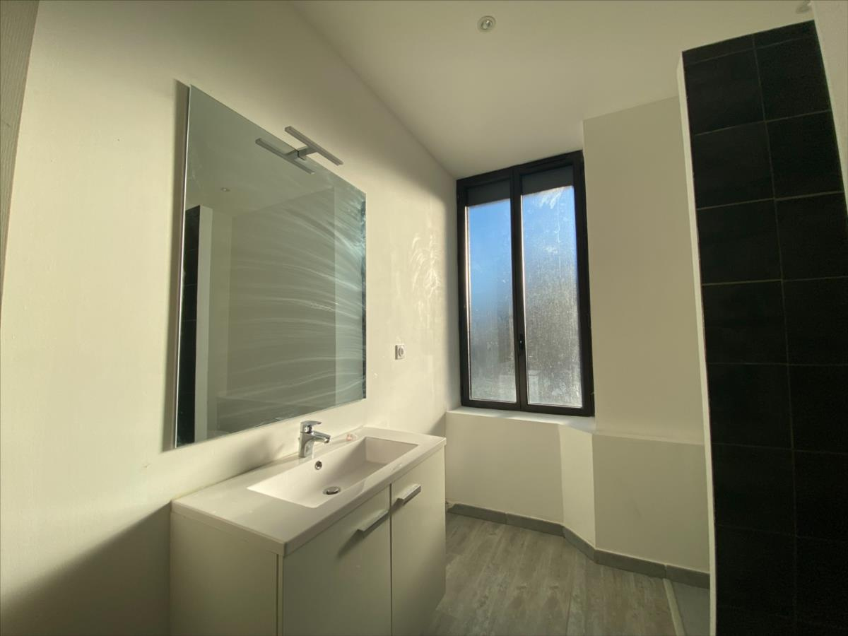 Entièrement refait avec de belles prestations ce dernier se présente de la manière suivante : une entrée dégagement, une pièce de vie avec un coin cuisine équipée (plaque de cuisson, hotte aspirante, four), une chambres avec rangement, et une salle d’eau avec WC.